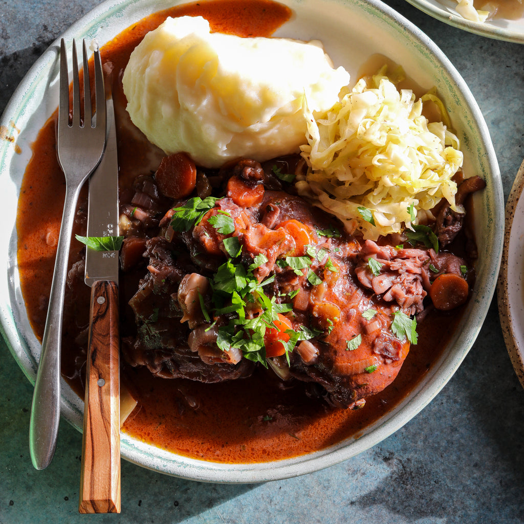 - Serve with bone broth enriched mashed potato and buttery braised cabbage with grated nutmeg.