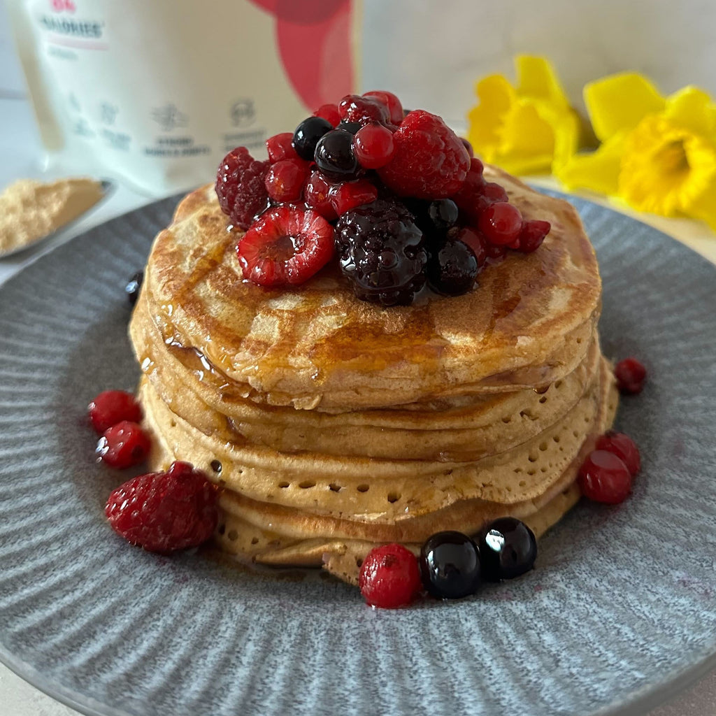 - Put the bone broth powder, banana, oats, eggs, baking powder and cinnamon in a blender for 1-2 mins until smooth. Scrape down the sides and blend it again so the oats are totally broken down. If it’s too thick, add the milk to loosen.