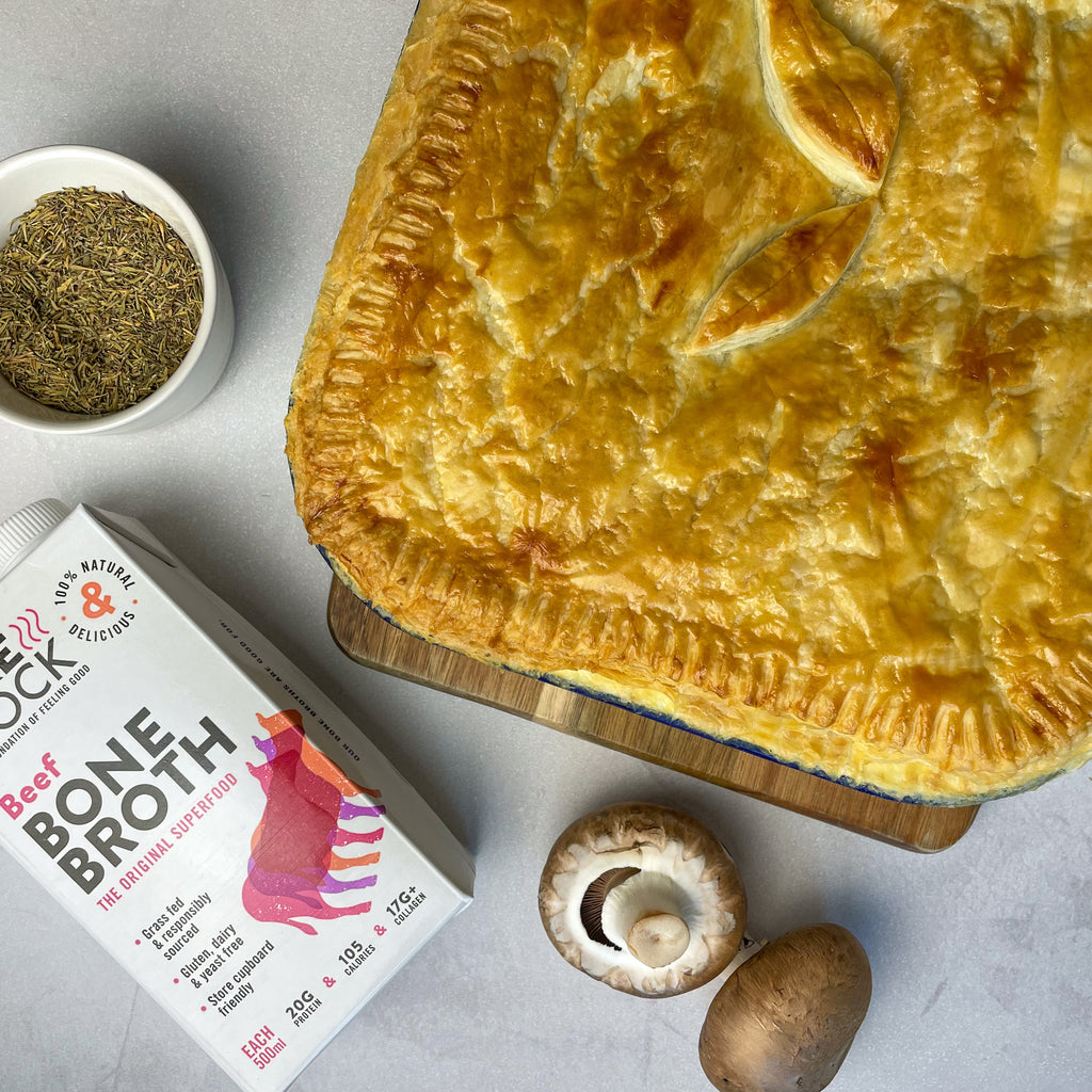 - Add the vegetables, herbs, ale and Freja Beef Bone Broth. Bring to a simmer, then cover with a lid and gently simmer for 1 hr. Once it’s cooked, check the seasoning and add the remaining butter. Mix well and put it all into an ovenproof serving dish.