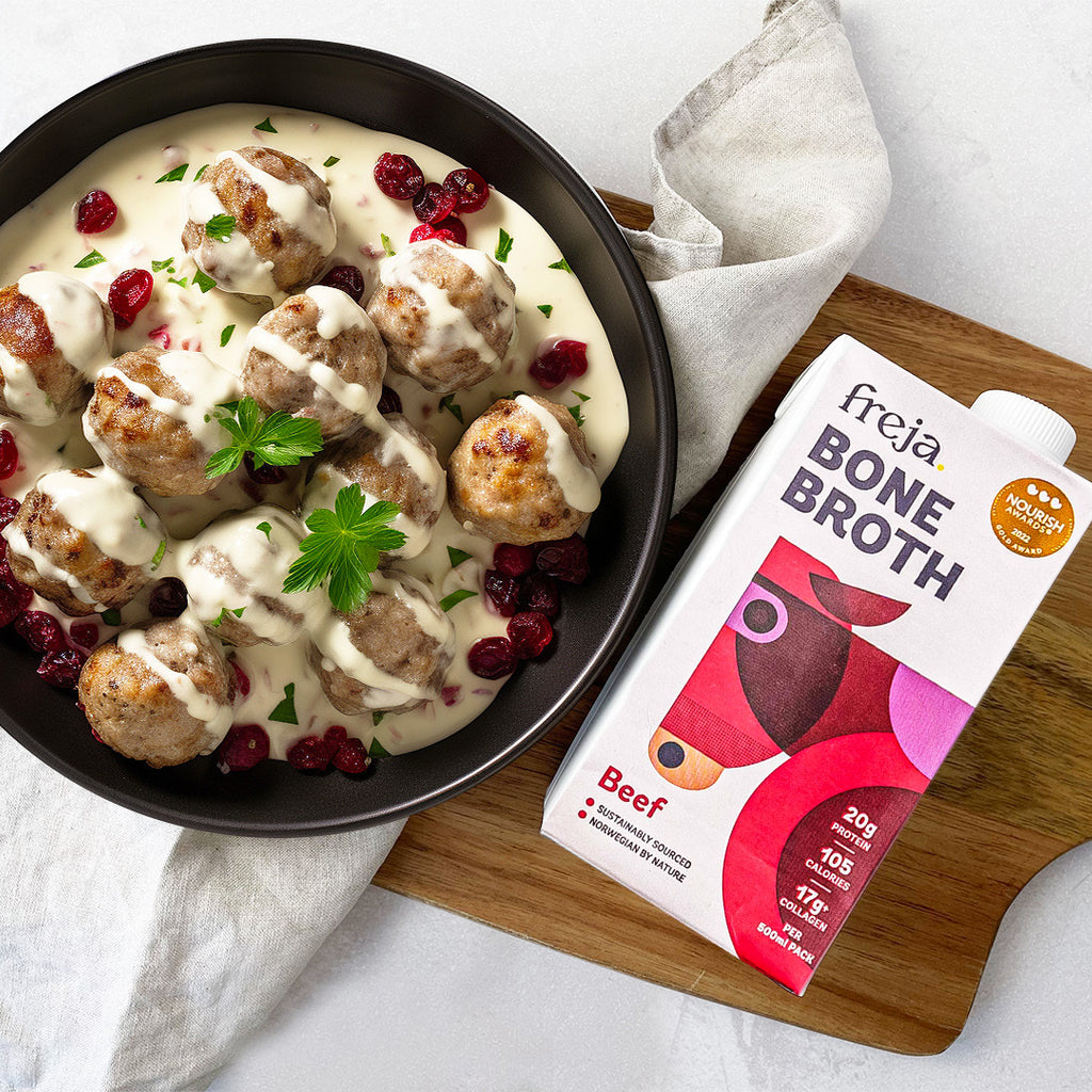 Serve the meatballs with lashings of gravy and a big spoonful of lingonberry jam. If you can’t find any then a cranberry jam or redcurrant jelly would work as well.