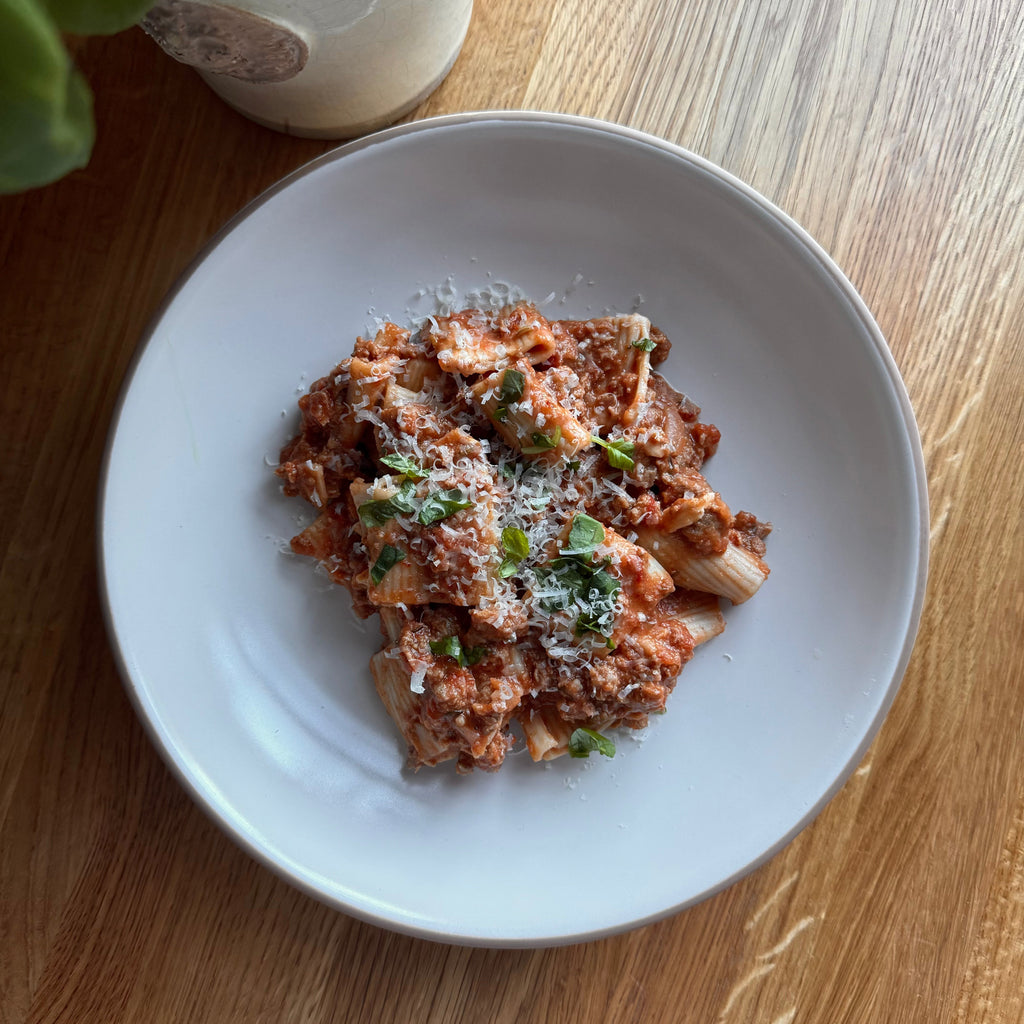 - 400g rigatoni (Northern Pasta Co is our favourite)