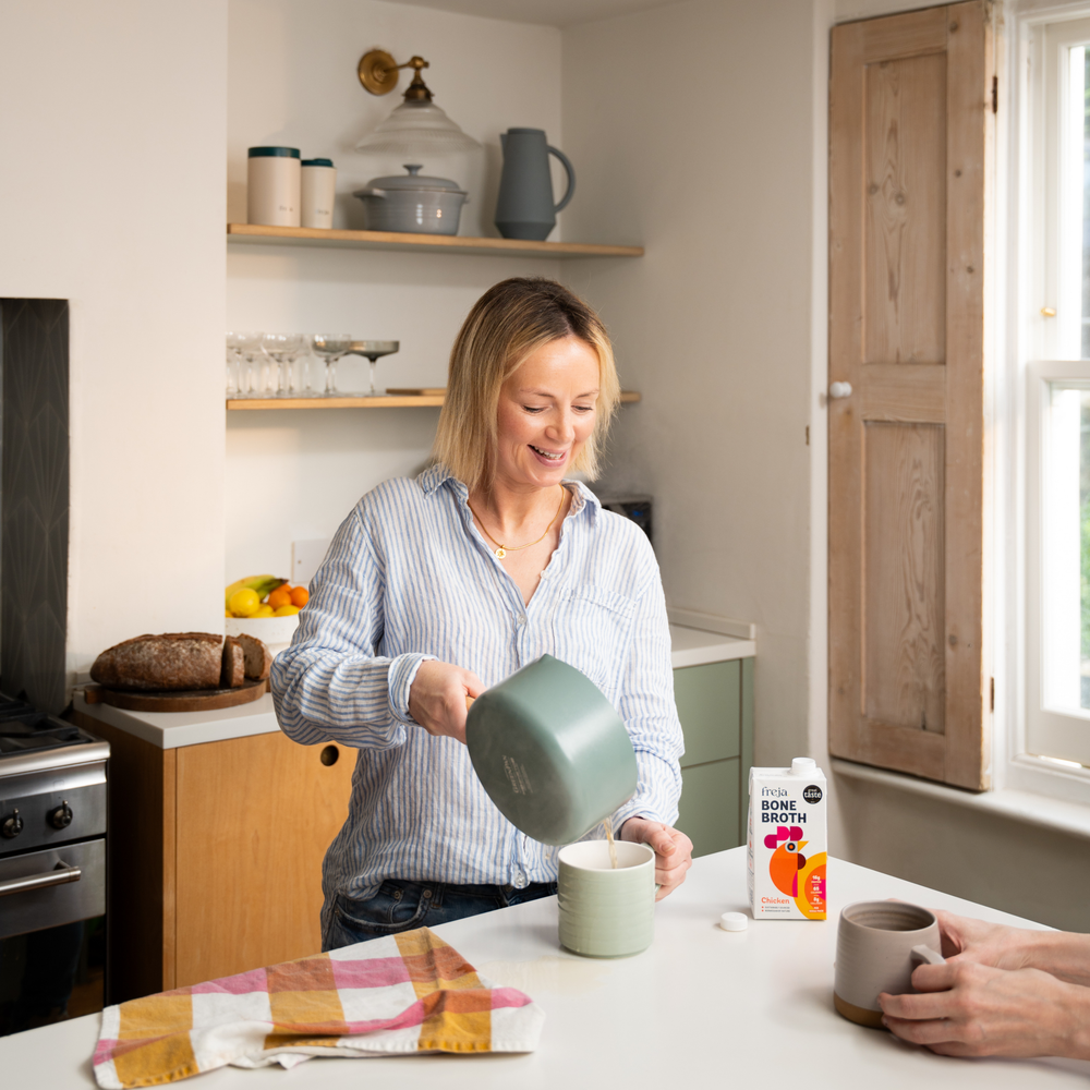 “Bone broth offers a source of nutrients that can otherwise be lacking in our diets. My favourite brand is Freja. A good broth will solidify and gel when chilled because the prolonged simmering in water helps to release amino acids and collagen from cartilage-rich joints and Freja does that!”