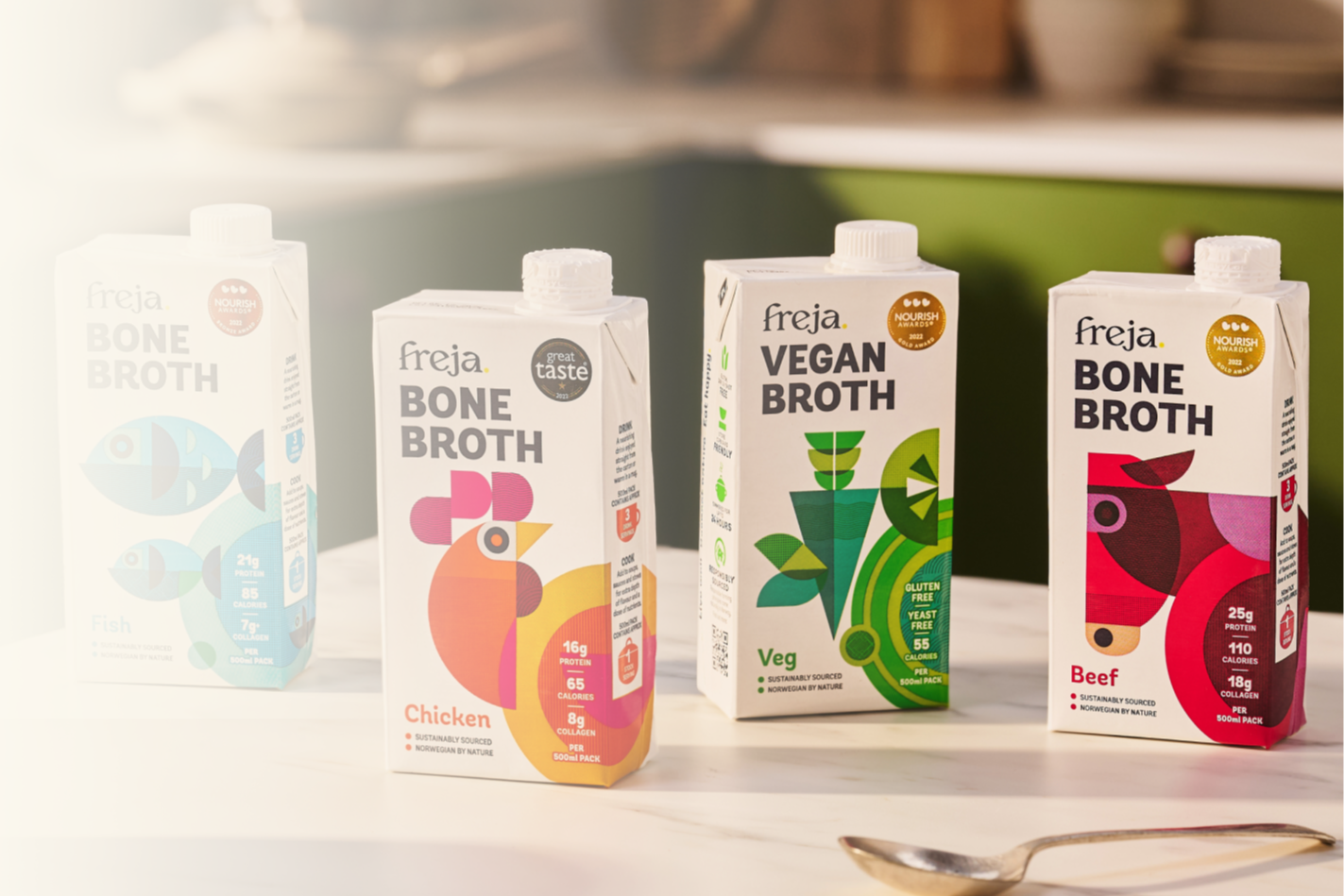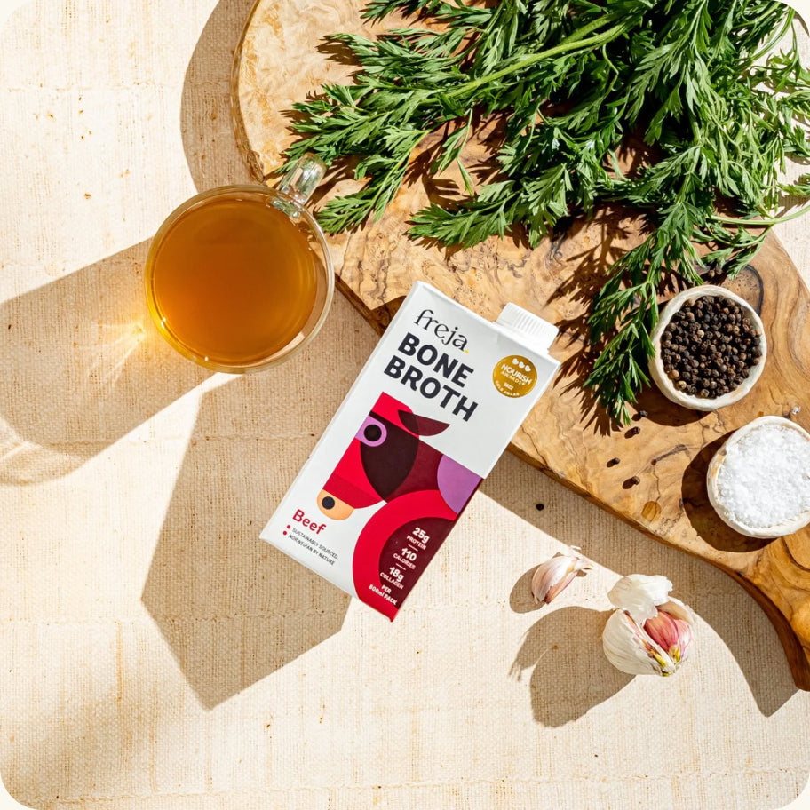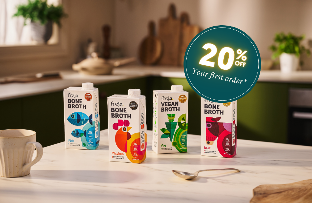 “Bone broth offers a source of nutrients that can otherwise be lacking in our diets. My favourite brand is Freja. A good broth will solidify and gel when chilled because the prolonged simmering in water helps to release amino acids and collagen from cartilage-rich joints and Freja does that!”