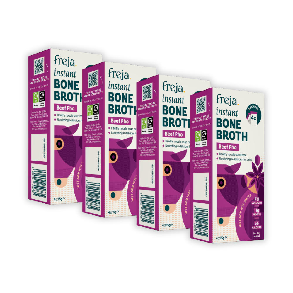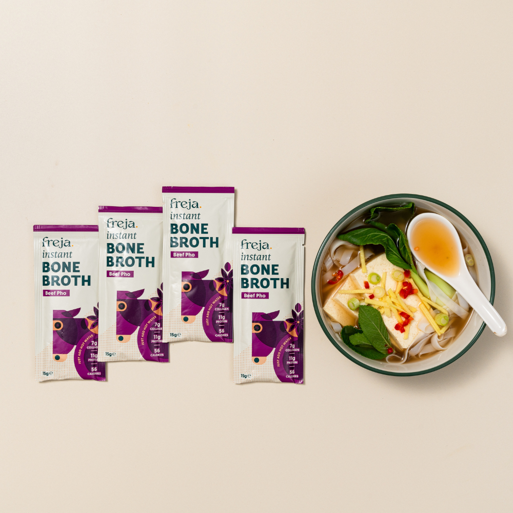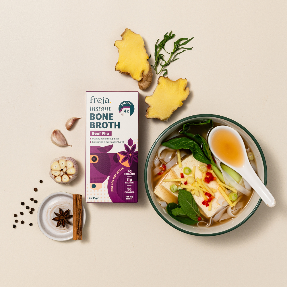 Most instant pho broths are packed with artificial flavourings, preservatives, and hidden additives. Freja Instant Pho Bone Broth gives you the same quick convenience—without the ultra-processed ingredients.