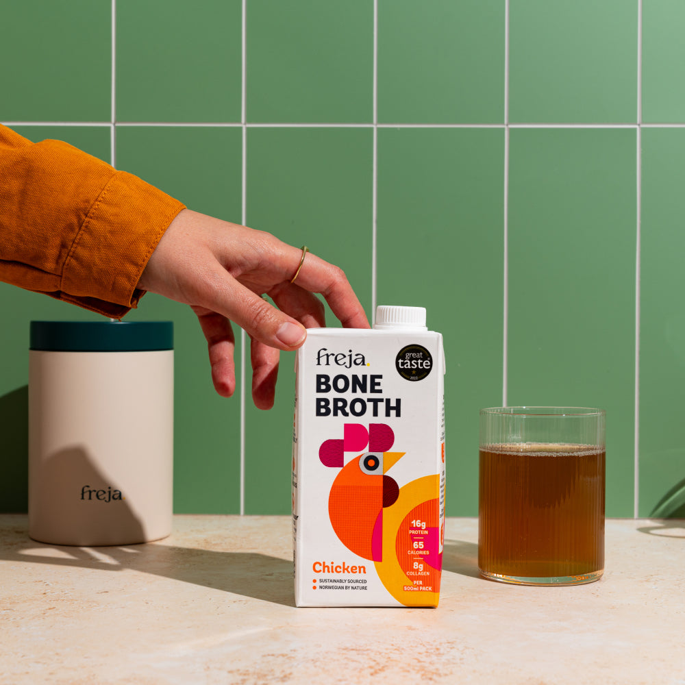 This deliciously high-protein chicken bone broth combines award-winning taste with natural nutrition.