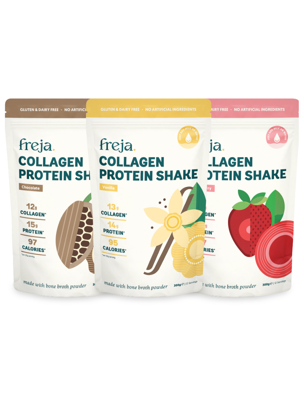 Freja’s Bone Broth Shakes are a subtly sweet blend of collagen and protein, made with simple, clean label ingredients. They’re a delicious and easy way to enjoy the nourishing benefits of natural bone broth. Each creamy serving delivers up to 21g of collagen and 23g of protein, along with a broad spectrum of amino acids, minerals and electrolytes.